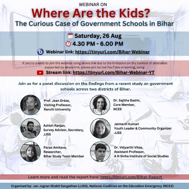 [Updates] REMINDER: Sat, 26 Aug, 4:30 - 6:00 PM | Webinar on the Study: "Where Are the Kids?: The Curious Case of Government Schools in Bihar"